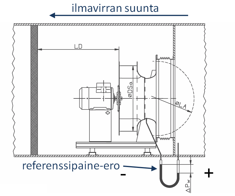 Referenssipaine ei ole siis puhaltimen tuottama kokonaispaineenkorotus vaan sen ainoa tehtävä on auttaa ilmavirran mittaamisessa. Mittarengas löytyy puhaltimista aina vakiona ja tarvittavat mittayhteet ovat meidän koneissa aina valmiiksi vedetty koneen rungon läpi.