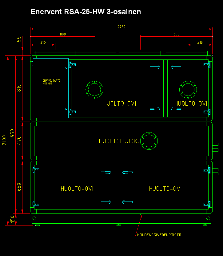 Enerventin tuotevalikoiman suositut RSA-sarjan pystylähtöiset koneet saa nyt myös kolmeosaisina. Pystysuunnassa pilkottu kone helpottaa haalausta ja on varmasti hyödyllinen viimeistään siinä vaiheessa kun saneerauskohteet yleistyvät ja koneita mahdutetaan olemassaoleviin ahtaisiin tiloihin ns. kenkälusikkamenetelmällä. Pilkonta nostaa koneen hintaa vähän, mutta se ei vaikuta säätölaitevaihtoehtoihin. Lisätietoa ja lisää kuvia saa tarvittaessa meikäläisiltä.